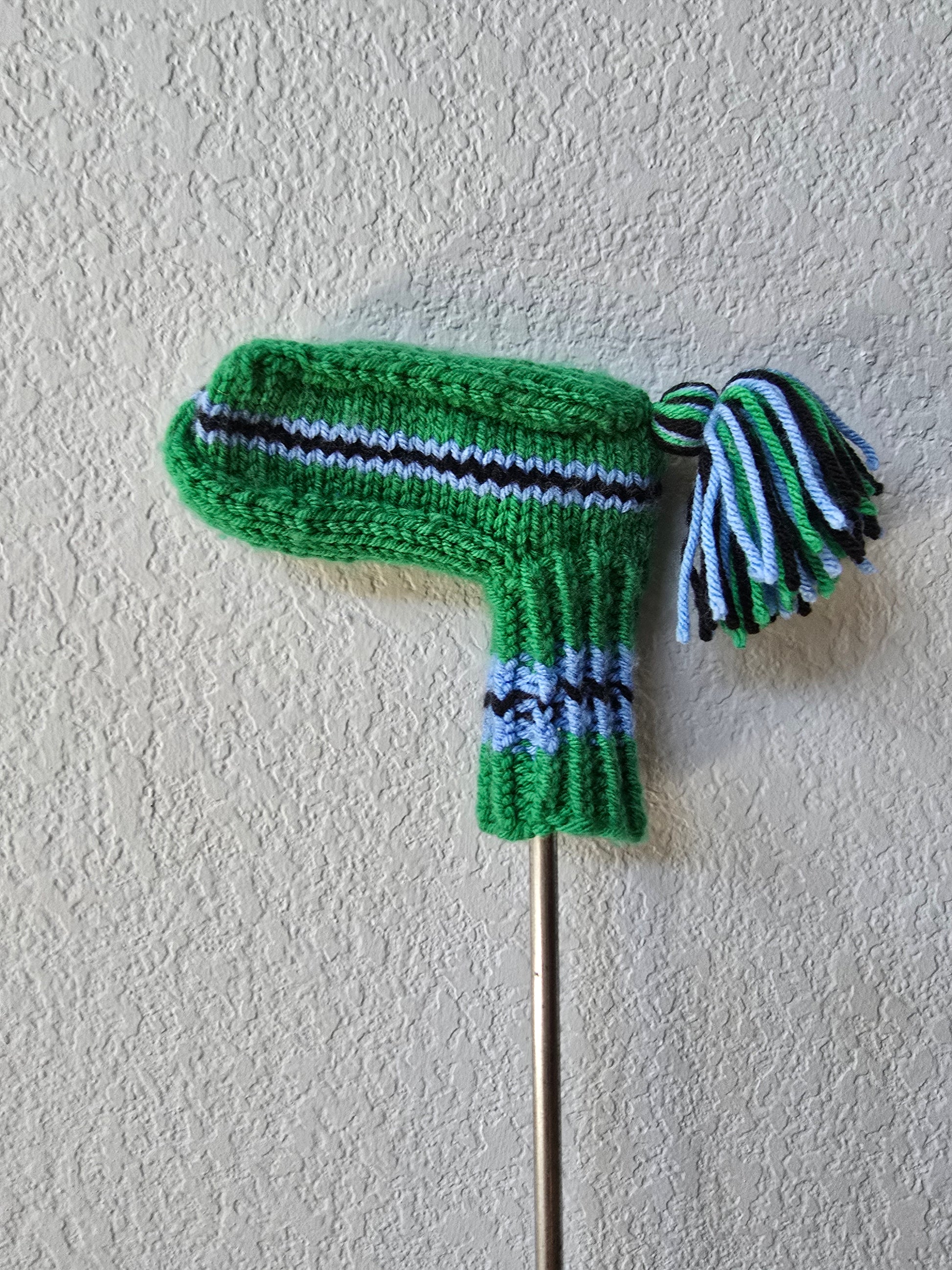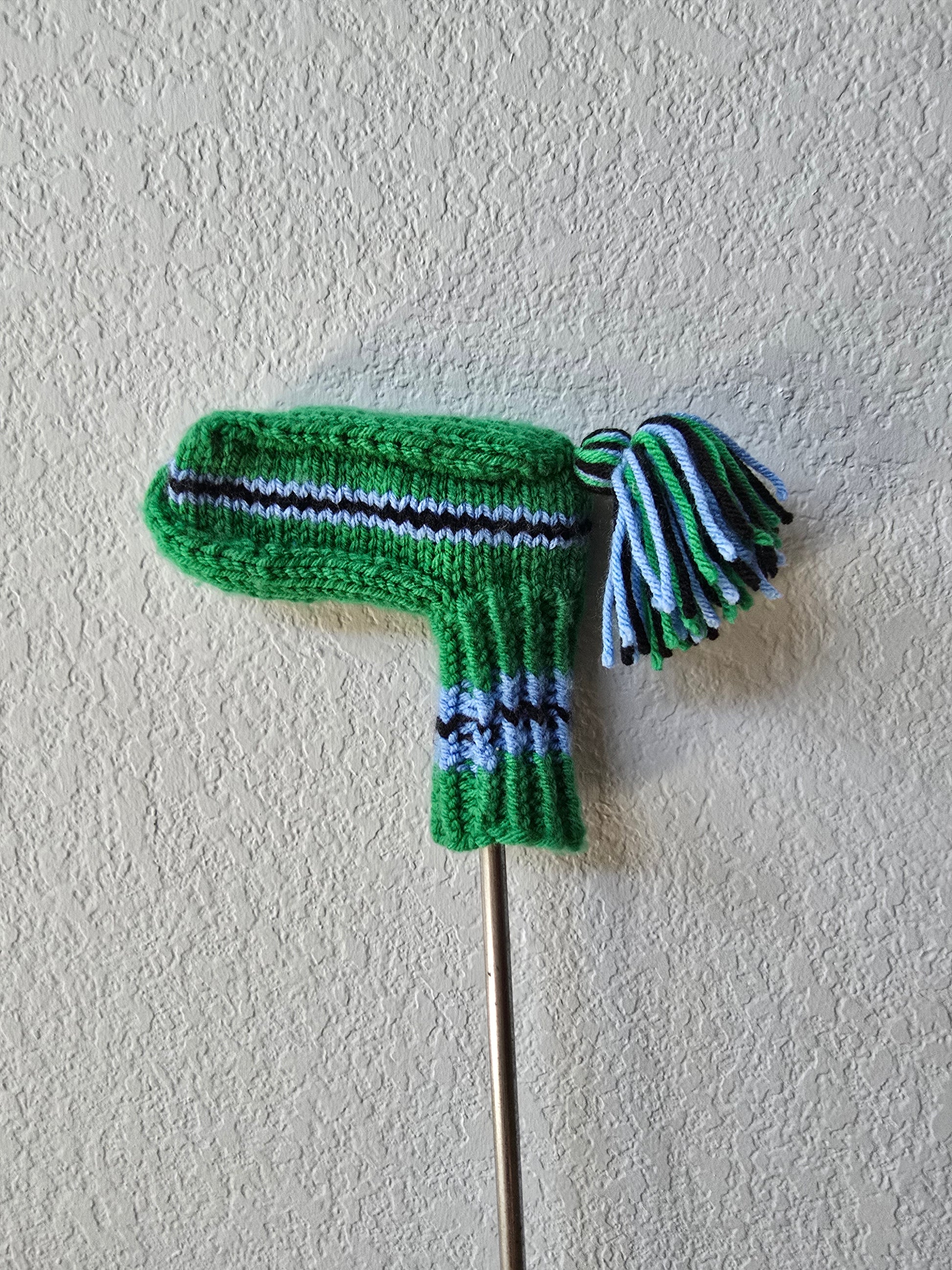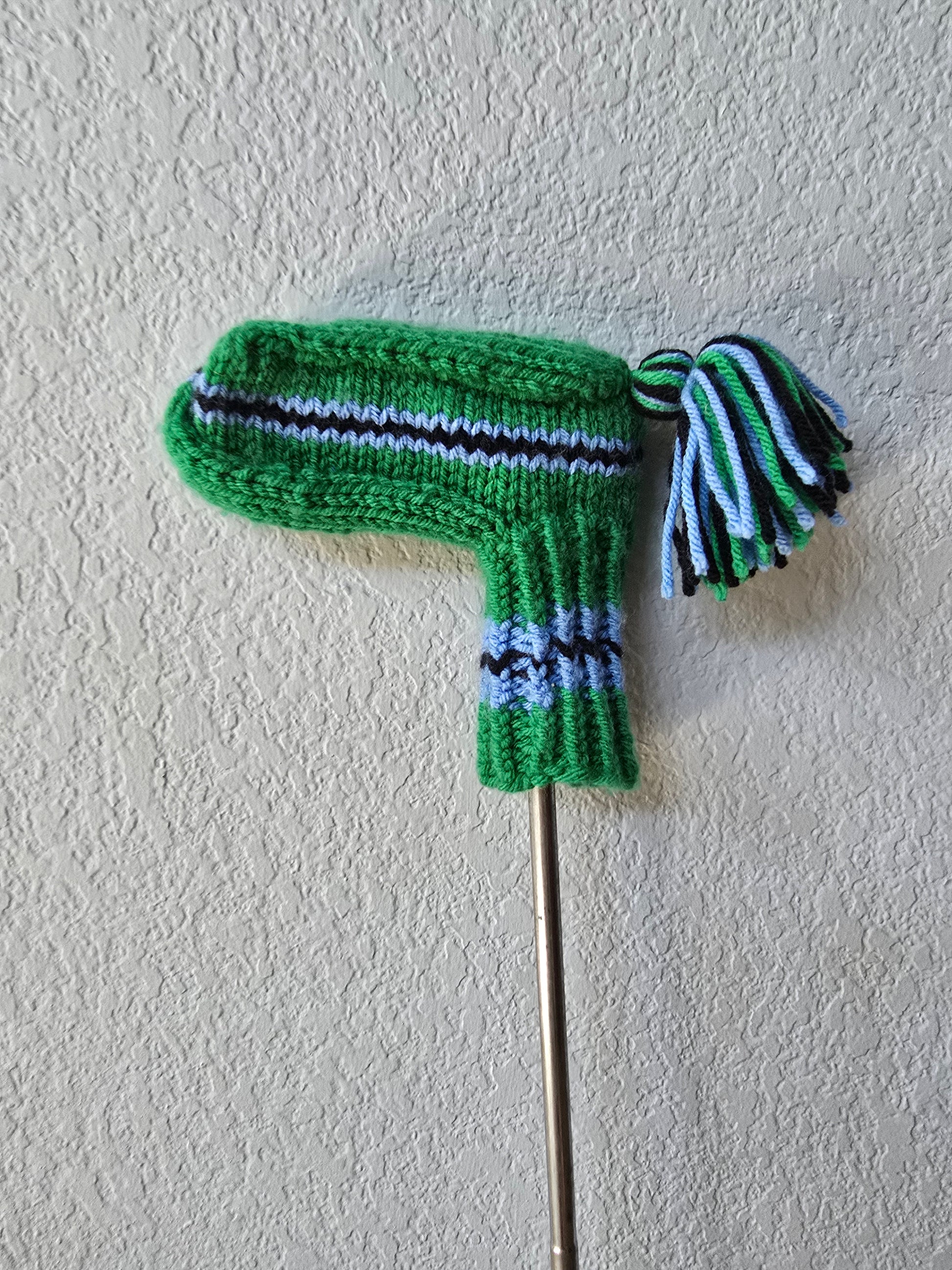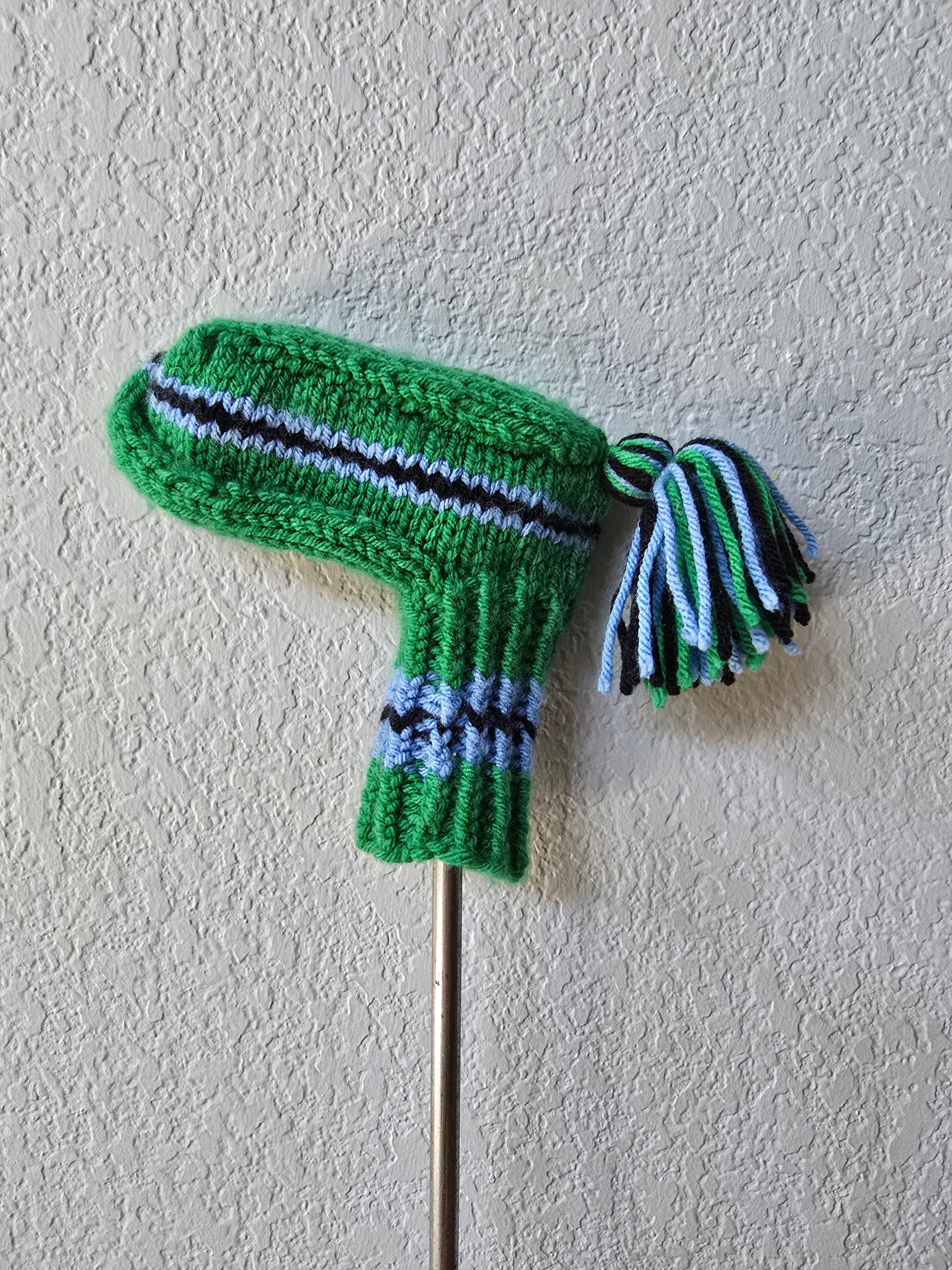 Hand Knit Golf Club Head Cover Retro-Vintage Green, Black & Blue for Putter with Tassel
