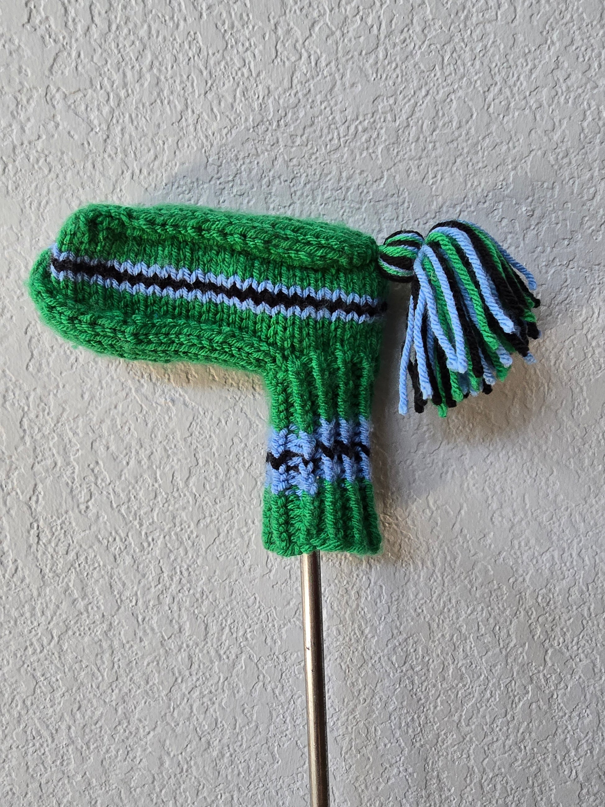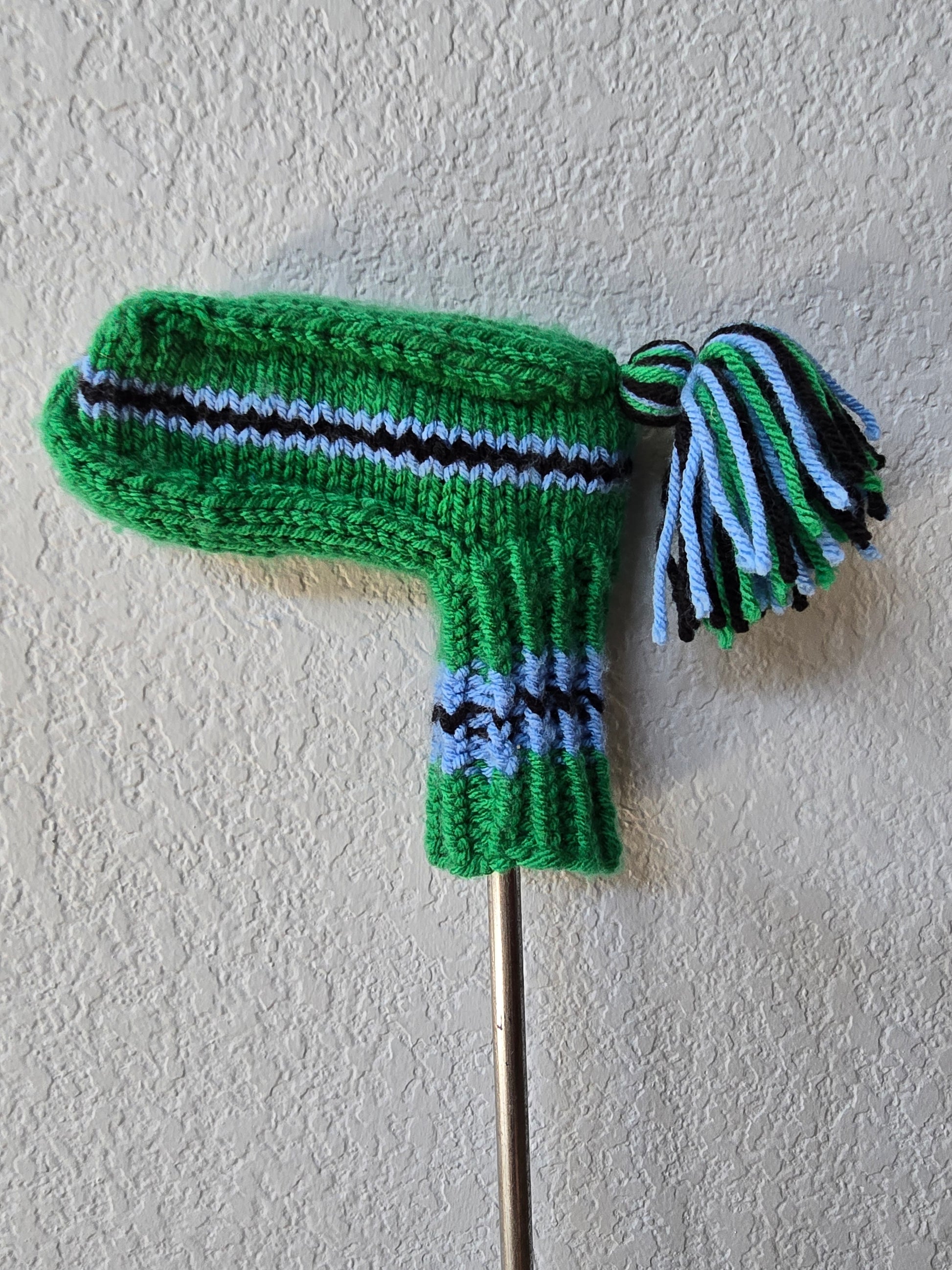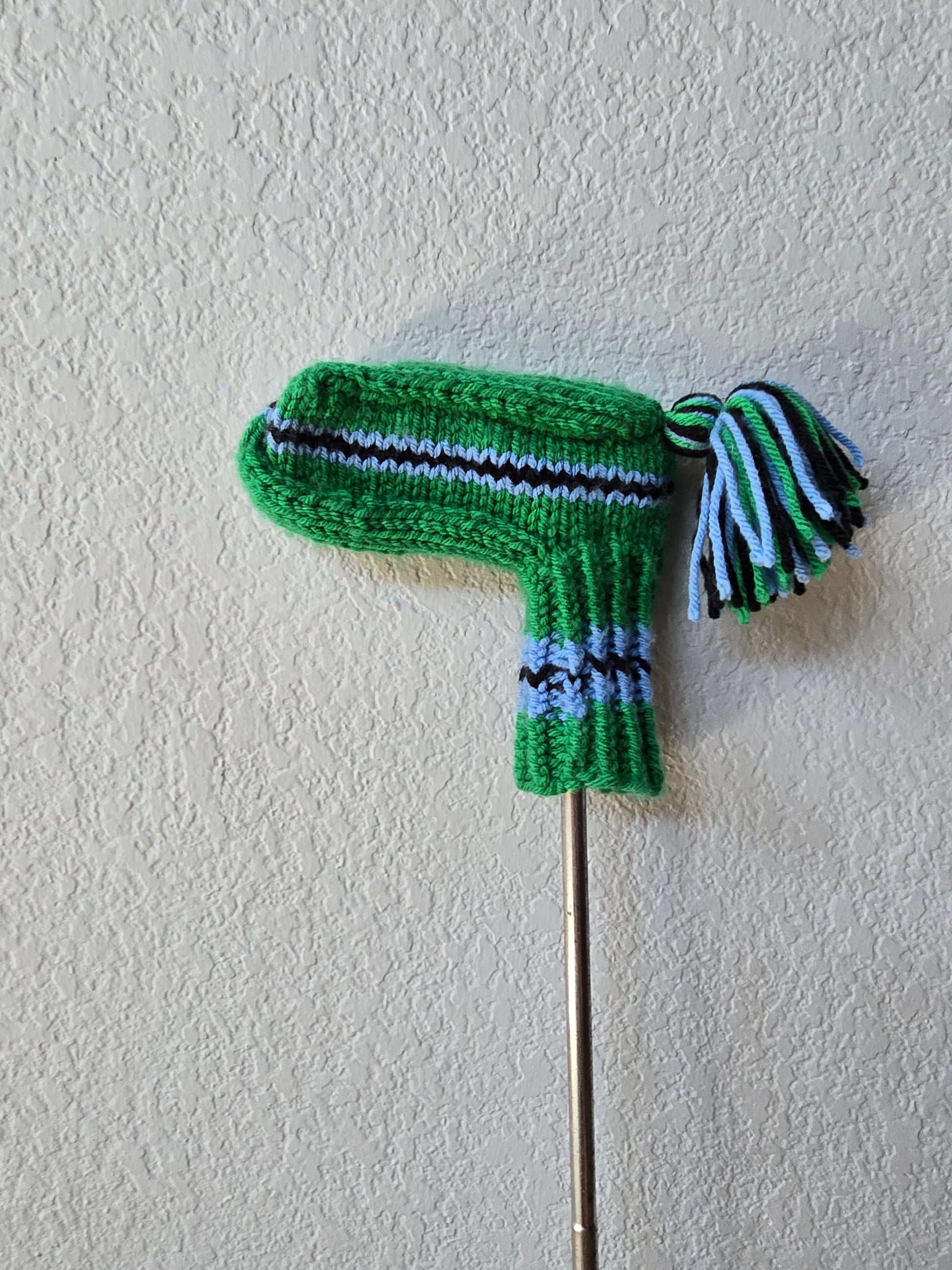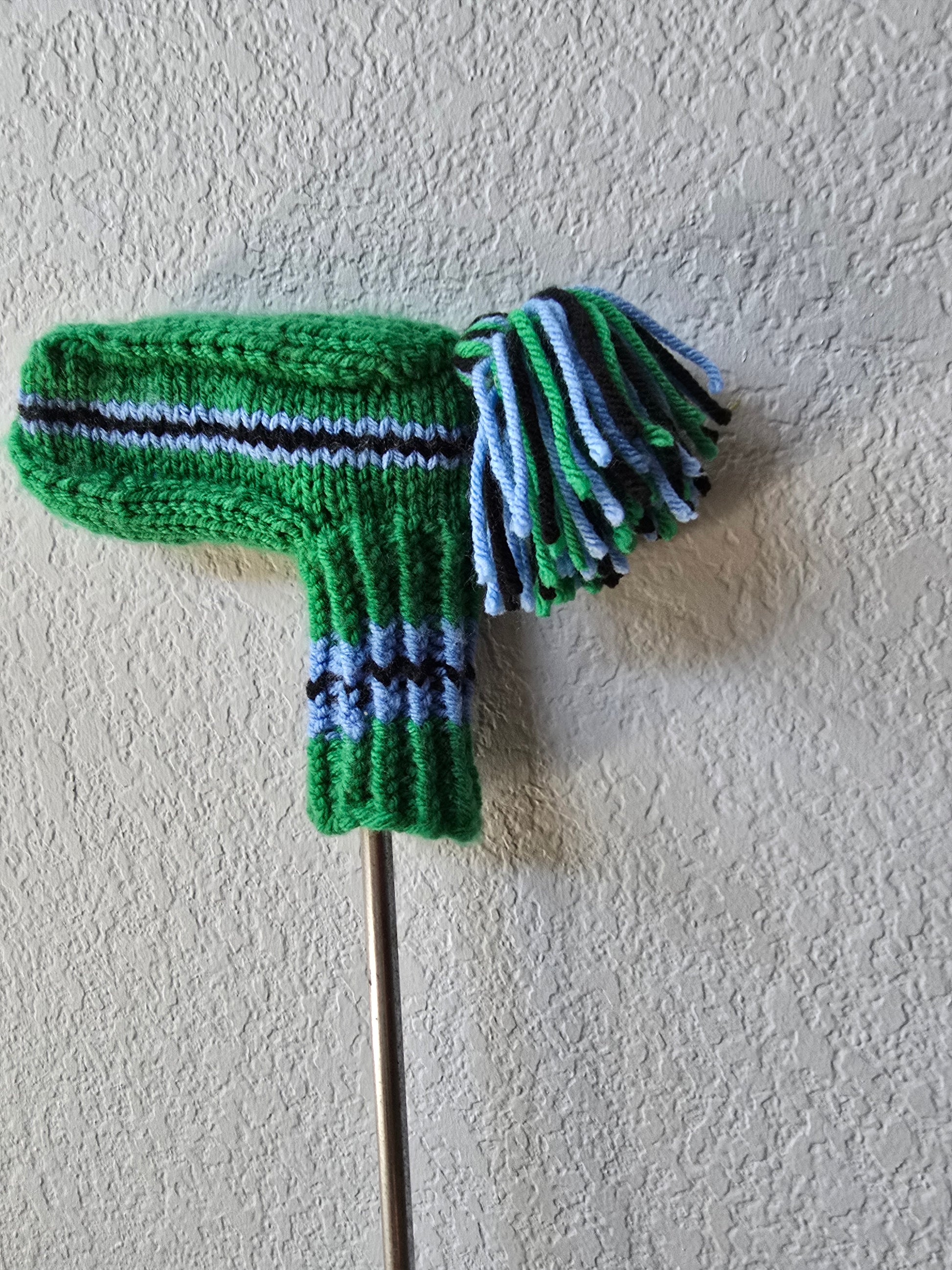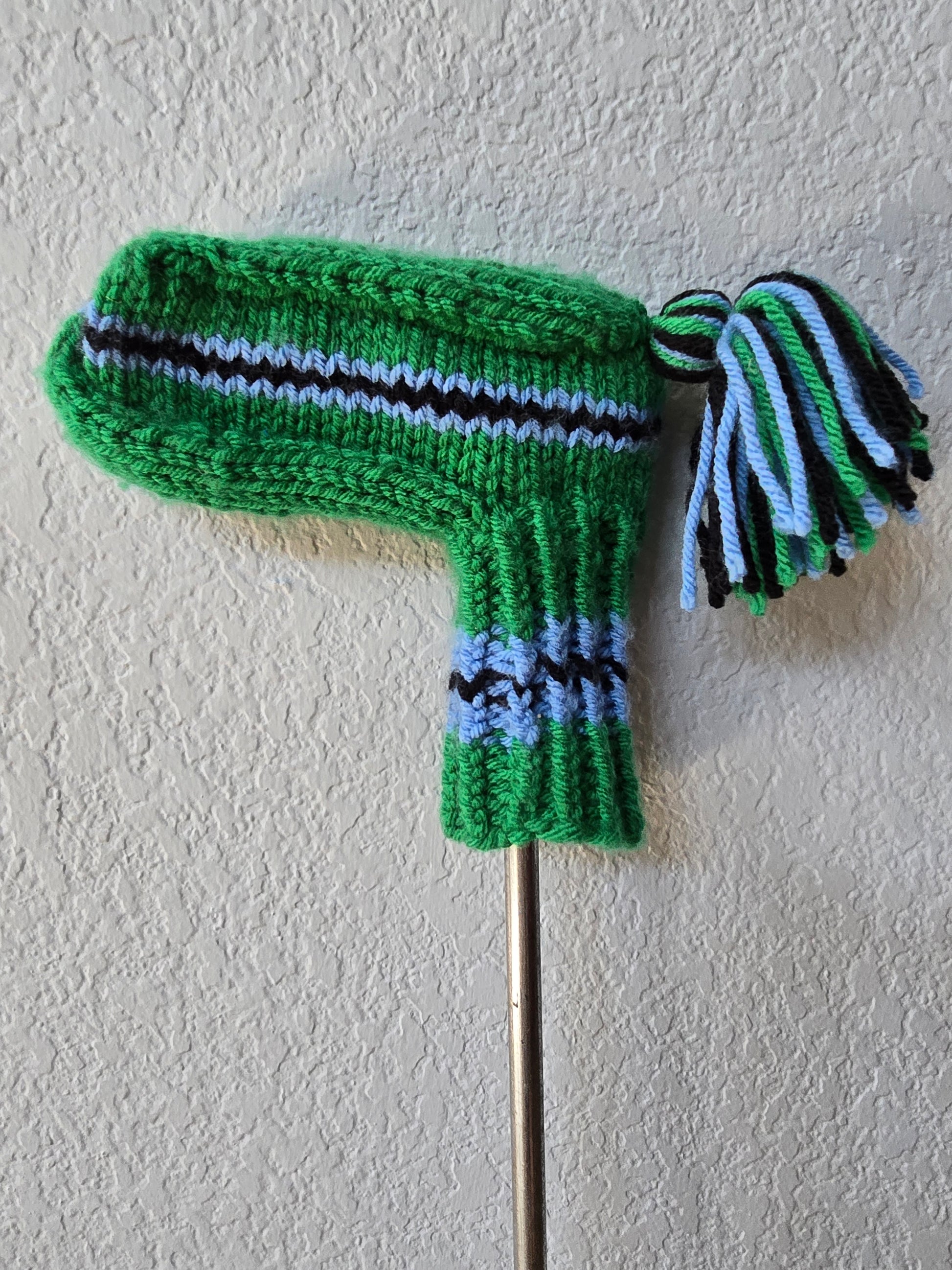 Hand Knit Golf Club Head Cover Retro-Vintage Green, Black & Blue for Putter with Tassel