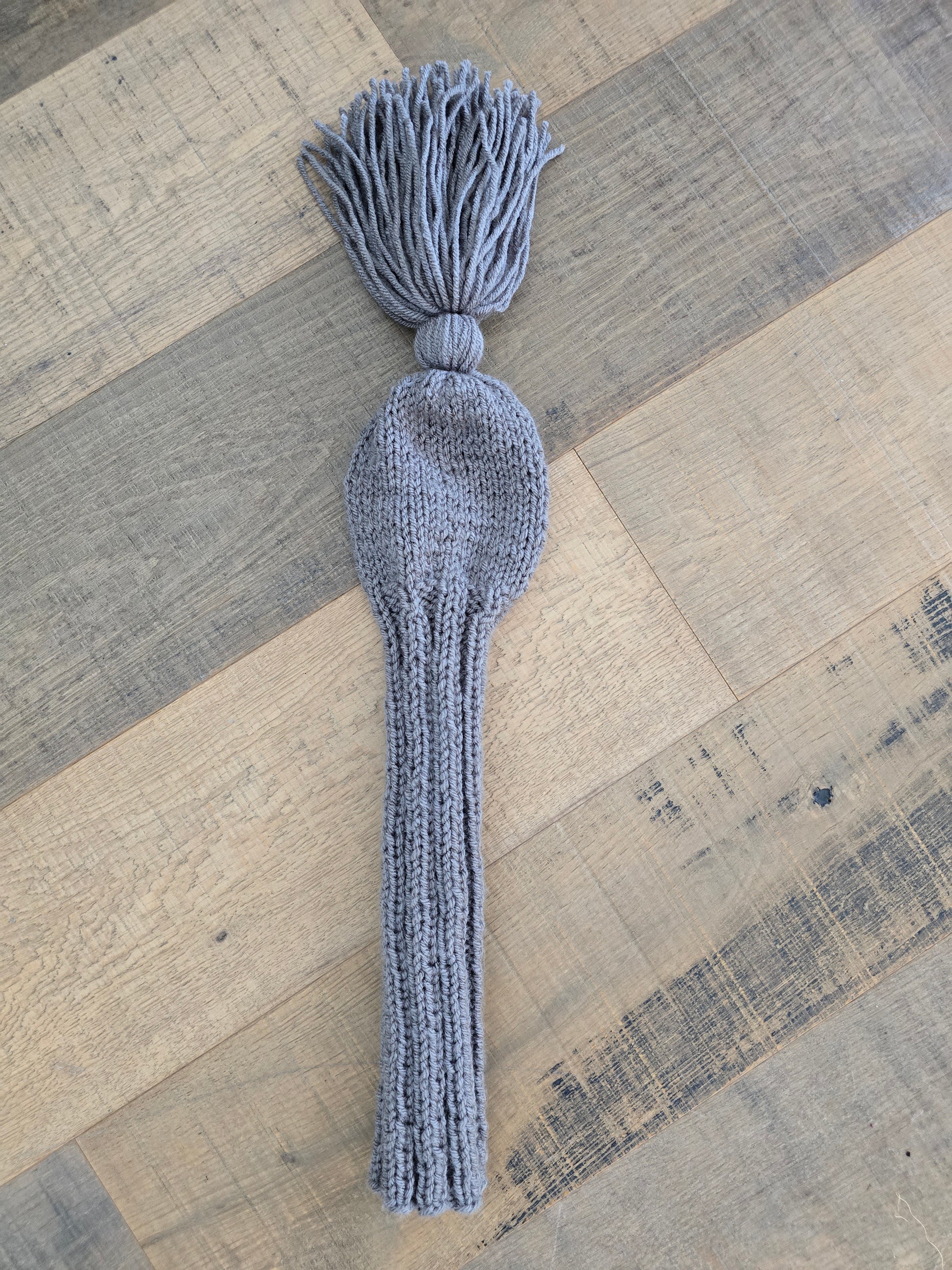 It's hand knit and has a tassel too.